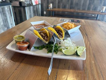 Order of 3 tacos, cilantro, onions, rice and beans.